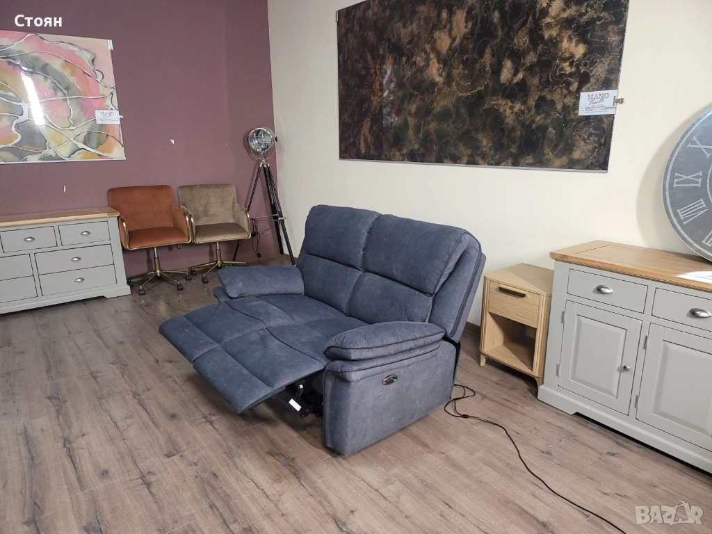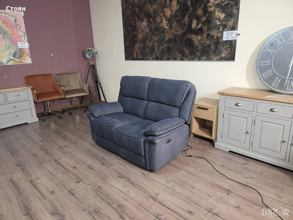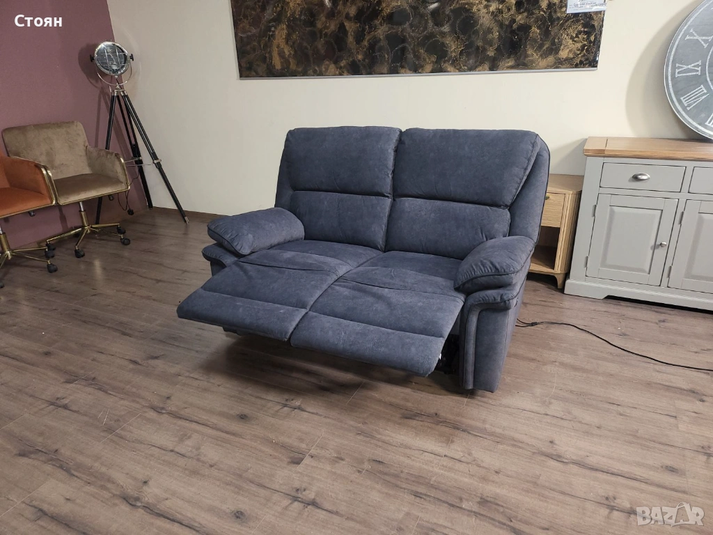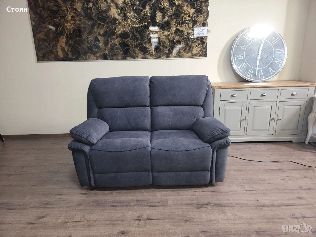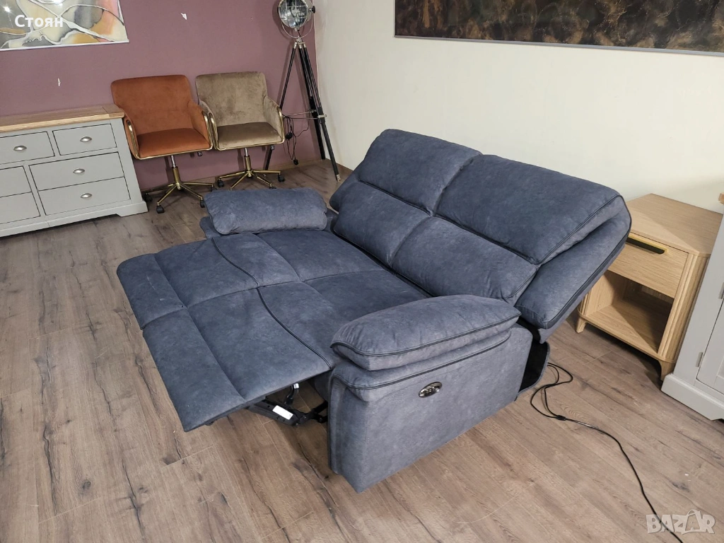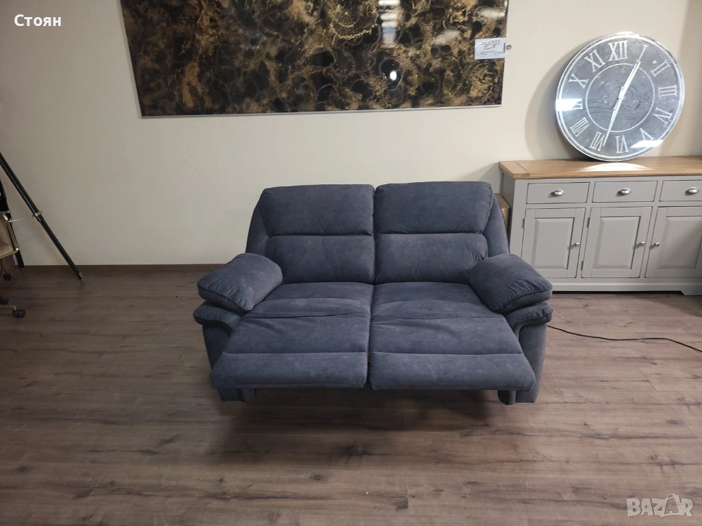 Сив диван от плат двойка с електрически релаксиращ механизъм → Обява 53721318