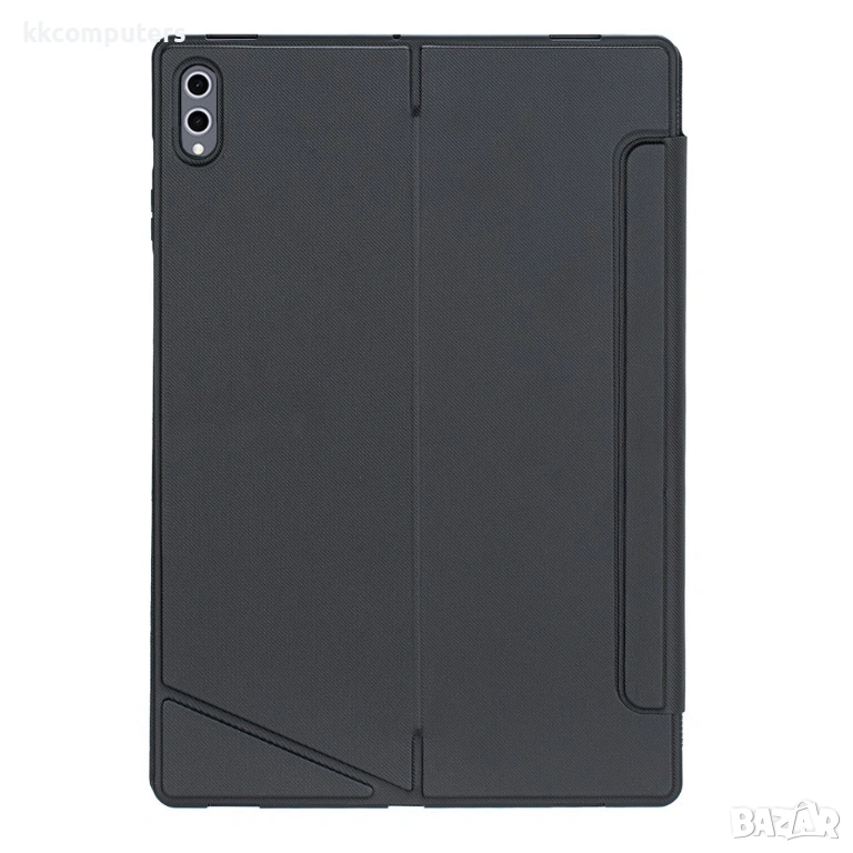 Калъфът изпълнява и защитна функция, като предпазва таблета от надрасквания и удари. Сгъваемата стойка позволява удобно позициониране на устройството за писане, гледане на видео или провеждане на видео разговори.