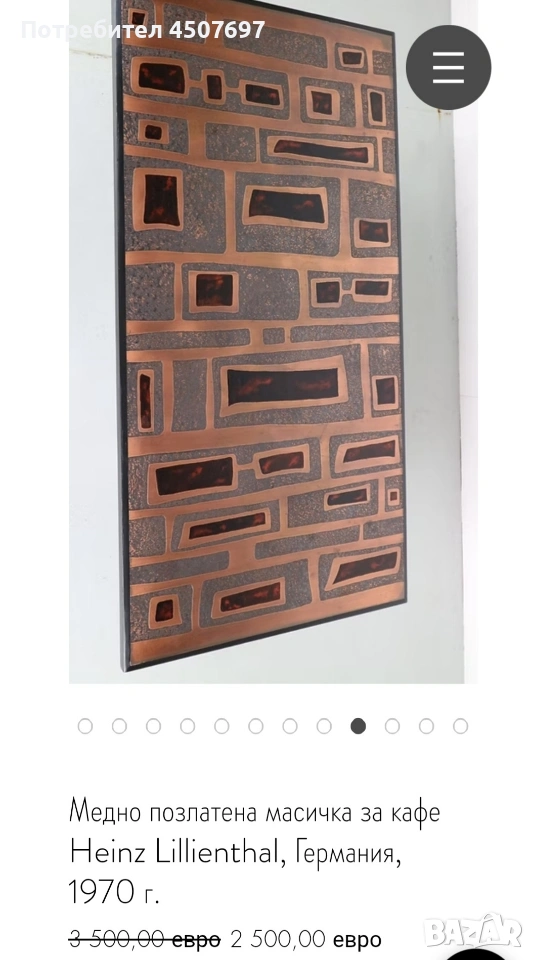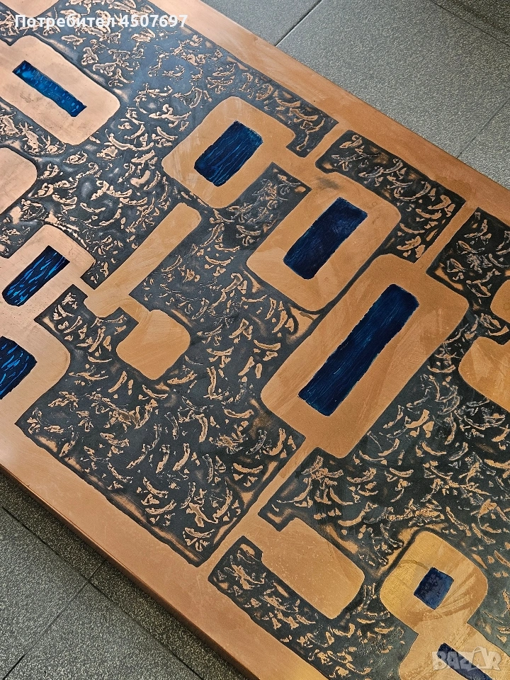 СКЛУПТОРНА Холна маса с медно Пано, ръчно изработена от световно известният немския дизайнер Хайнц Лилиентал. нама дална Част! ЦЕНАТА Е ЗАПАЗЕНА 800€!