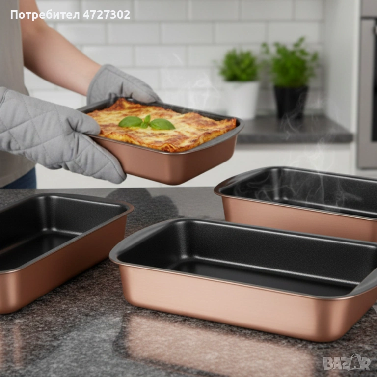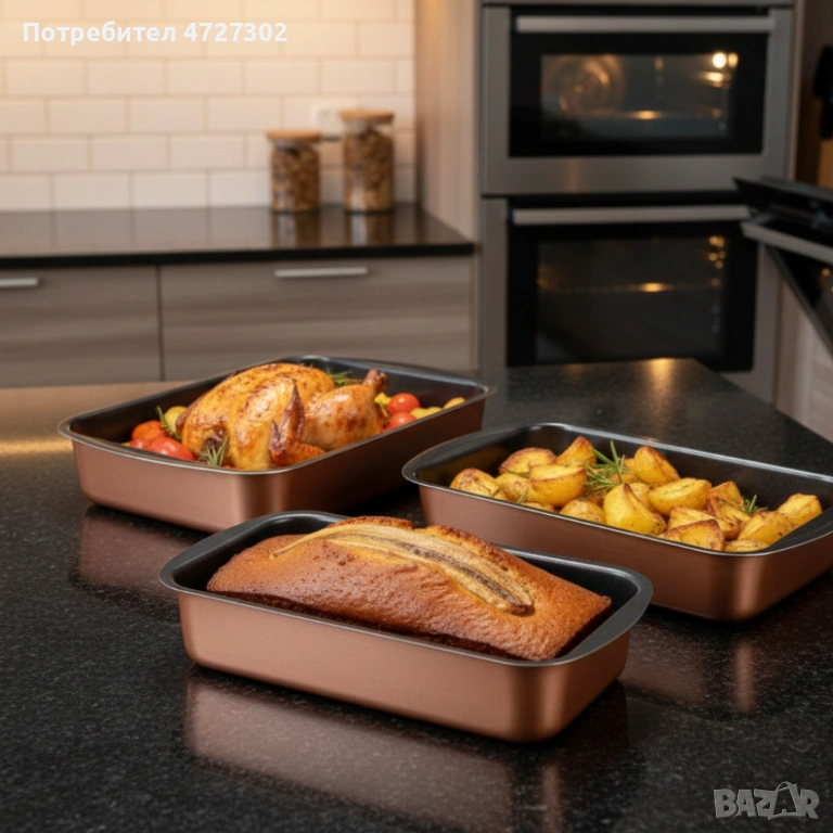 Комплект от 3 тави за печене Cheffinger с незалепващо покритие – различни размери, меден цвят, снимка 1 - Съдове за готвене - 53721710 Комплект от 3 тави за печене Cheffinger с незалепващо покритие – различни размери, меден цвят, снимка 2 - Съдове за готвене - 53721710 1/2