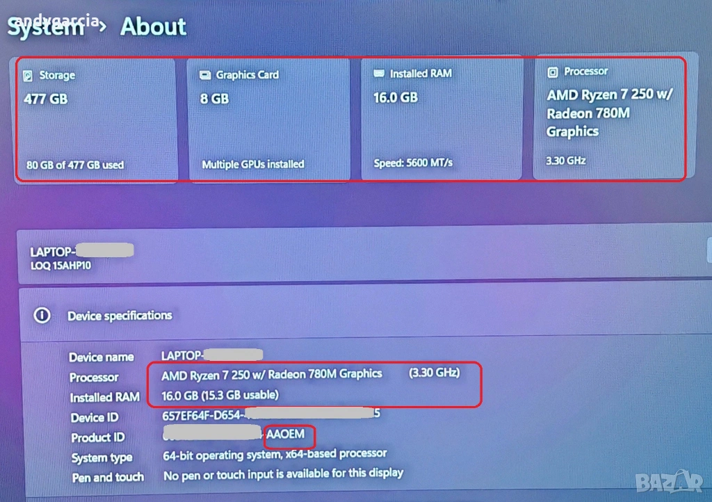Продавам прекрасен геймърски лаптоп Lenovo LOQ 15 - 15.6 инча, последно 10-то поколение на серията "AHP10".