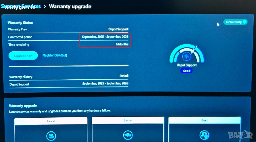 Лаптопа е на 6 месеца и има още 6 месеца международна каранция по SN.