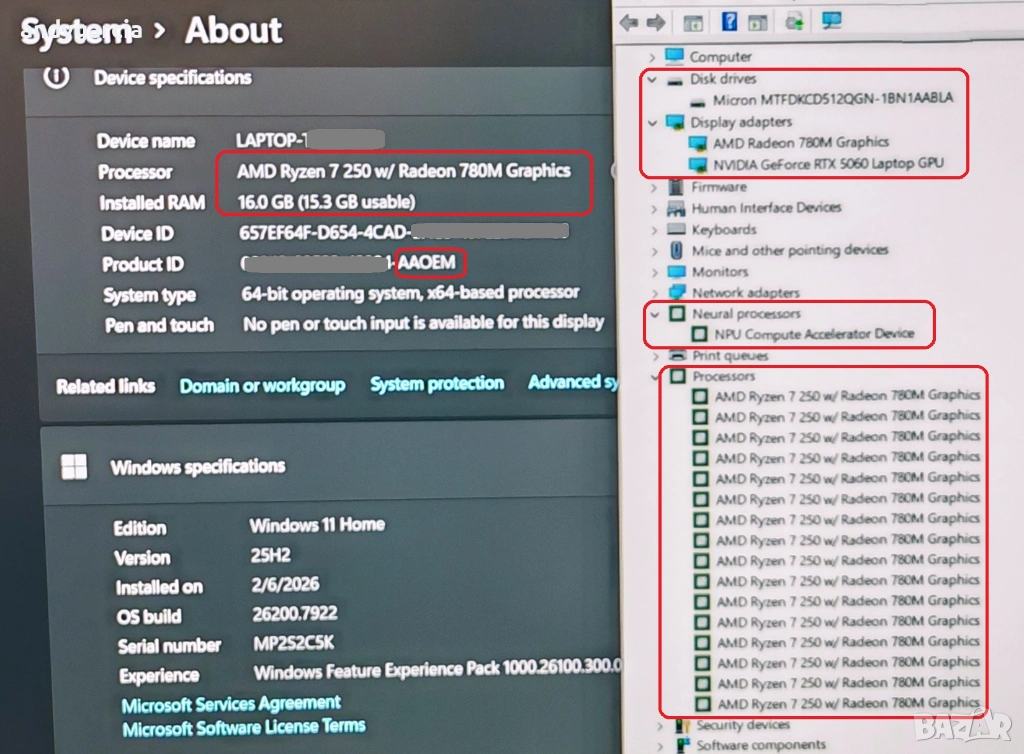 RTX 5060 8GB DLSS 4.0/4.5 и невронен процесор NPU за повече AI възможности.