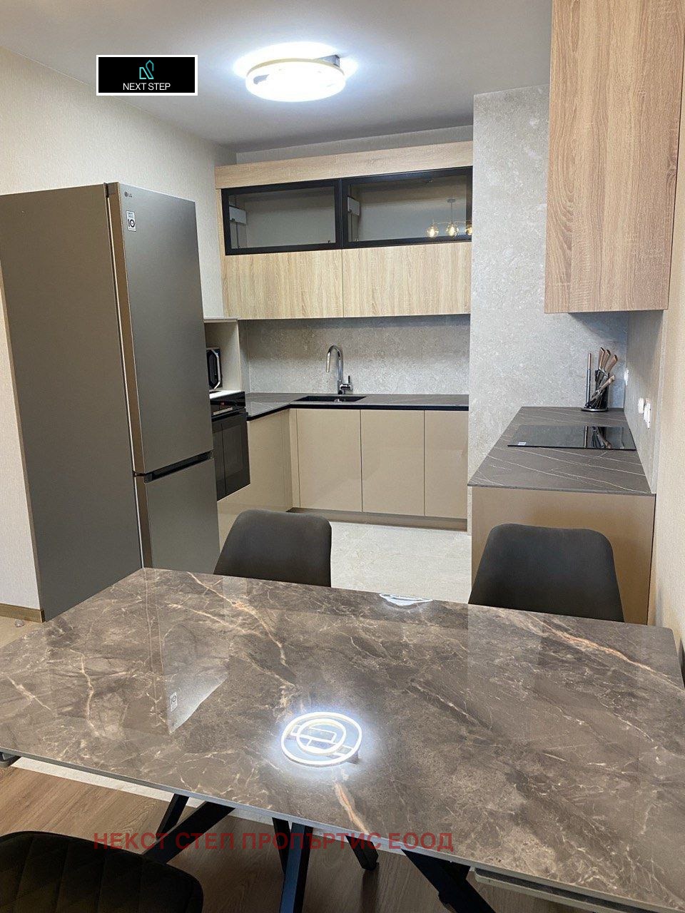 Жилището е обзаведено по индивидуален дизайнерски проект с премиум материали и съчетава светлина, комфорт и изискан стил.
