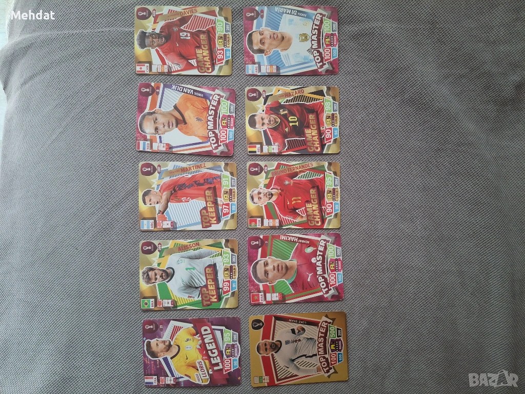 Колекционерски футболни карти – Hakimi, Di María, Hazard, Fernandes, Davies, Shaw, Van Dijk, Martínez, Alisson, Lloris