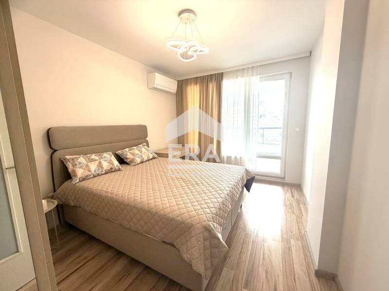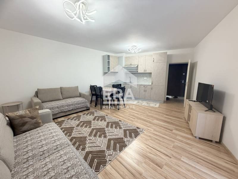 ЕКСКЛУЗИВНО! ЧИСТО НОВ, ОБЗАВЕДЕН АПАРТАМЕНТ НА СРЕДЕН ЕТАЖ, С ГОЛЕМИ СТАИ, ЮГОЗАПАД, В НОВА СГРАДА. ЕРА Варна Тренд предлага под наем двустаен, чисто нов и обзаведен апартамент, в нова тухлена сграда над ОУ Никола Вапцаров. Имотът е със застроена площ 66 кв.м (75 кв.м с общите части), разположен на трети етаж от общо 6 етажа. Състои се от просторна дневна с кухненски бокс (32 кв.м), голяма спалня (15 кв.м), обща за двете стаи широка тераса (10 кв.м), коридор (4 кв.м), баня с тоалетна (5 кв.м) и килер/дрешник (3 кв.м). Изложението е югозапад.