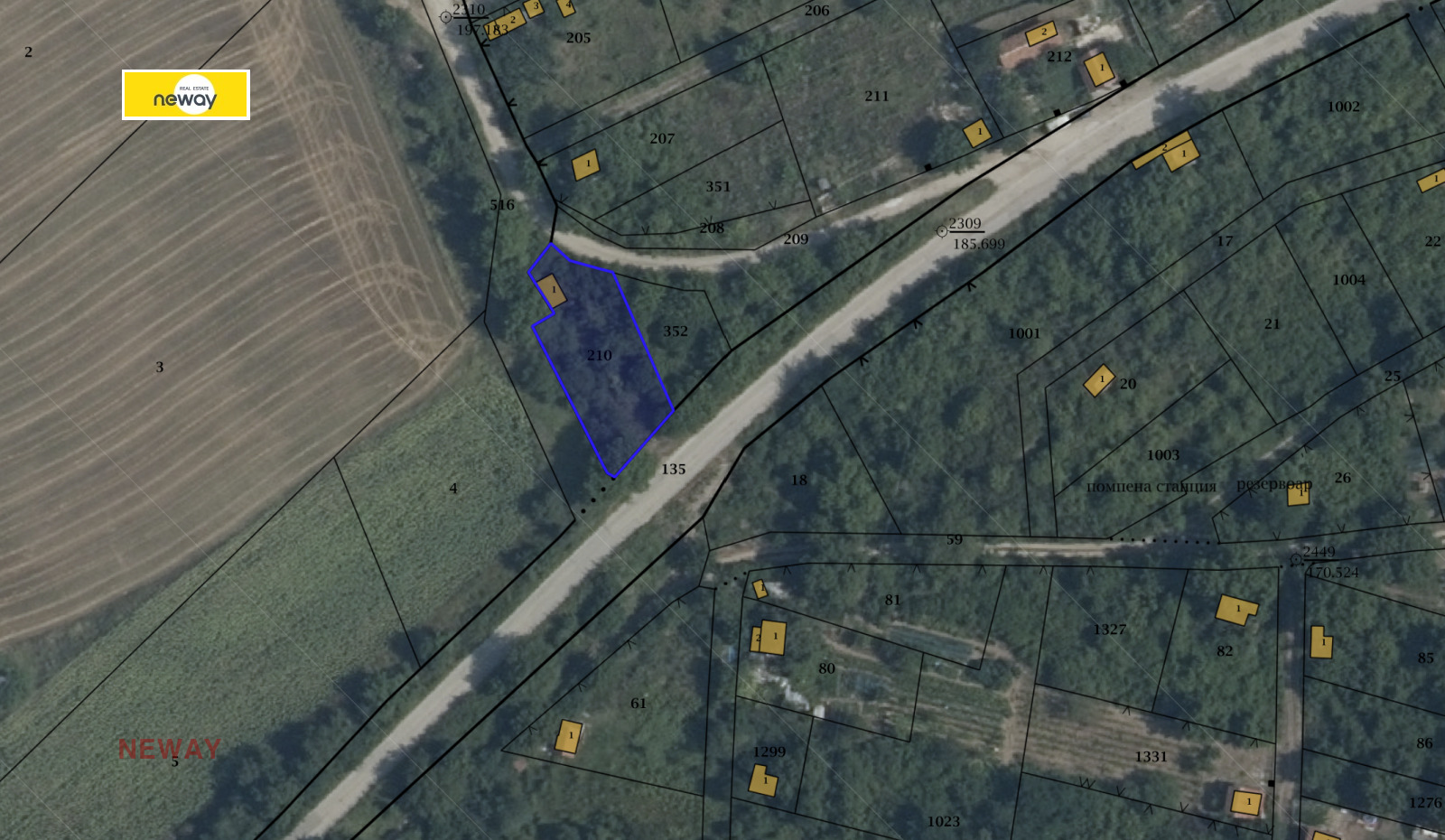 Поземлен имот с площ 600 кв.м., разположен с 15 м. лице на асфалтов път Плевен - Къртожабене. Съществуваща постройка с площ 20 кв.м и геран. Начин на трайно ползване: Друг вид нива.