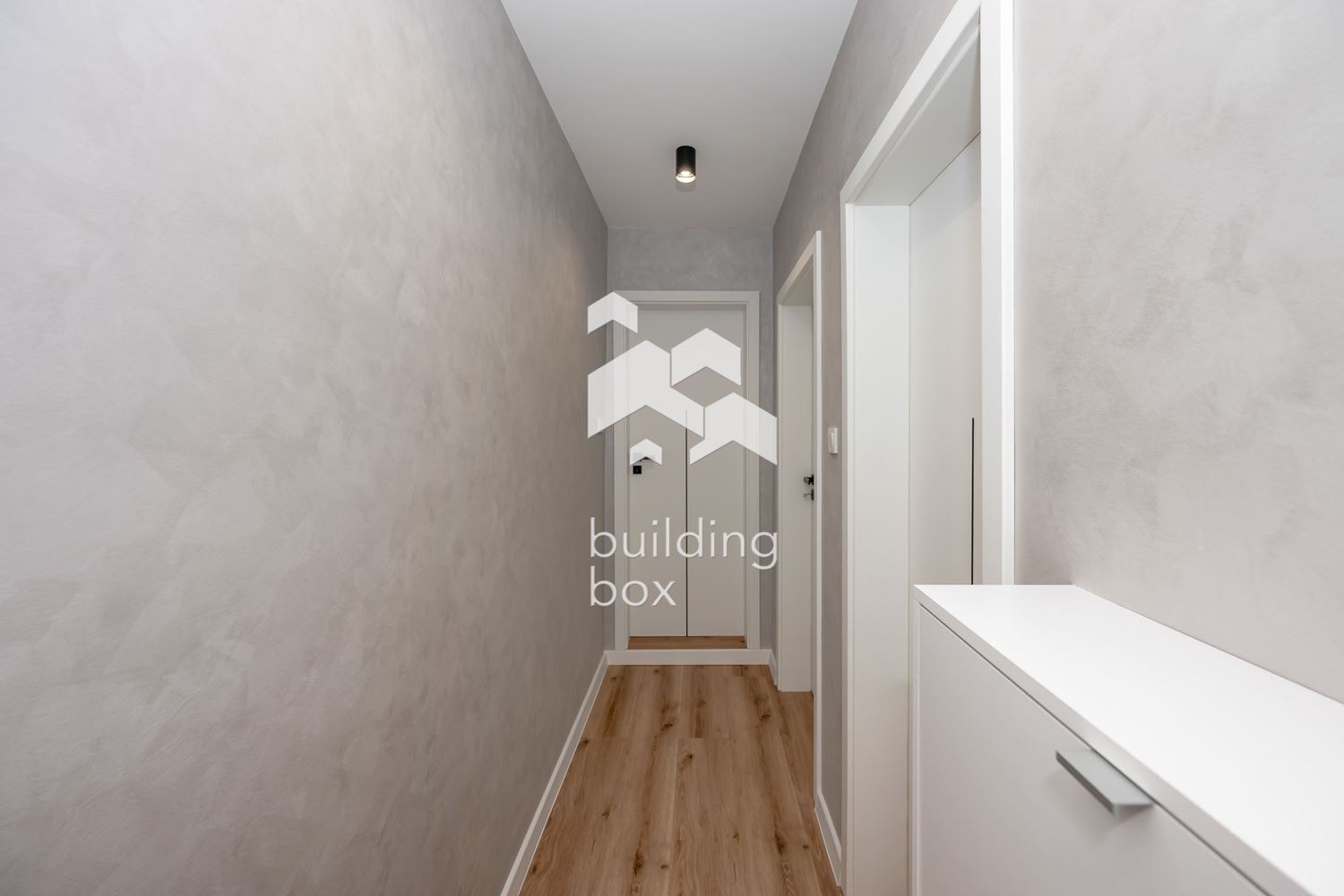 - РАЗПРЕДЕЛЕНИЕ: Дневна с трапезария и кухненски бокс, спалня, баня с тоалетна, преддверие и веранда, с площ от 13,31 кв.м.