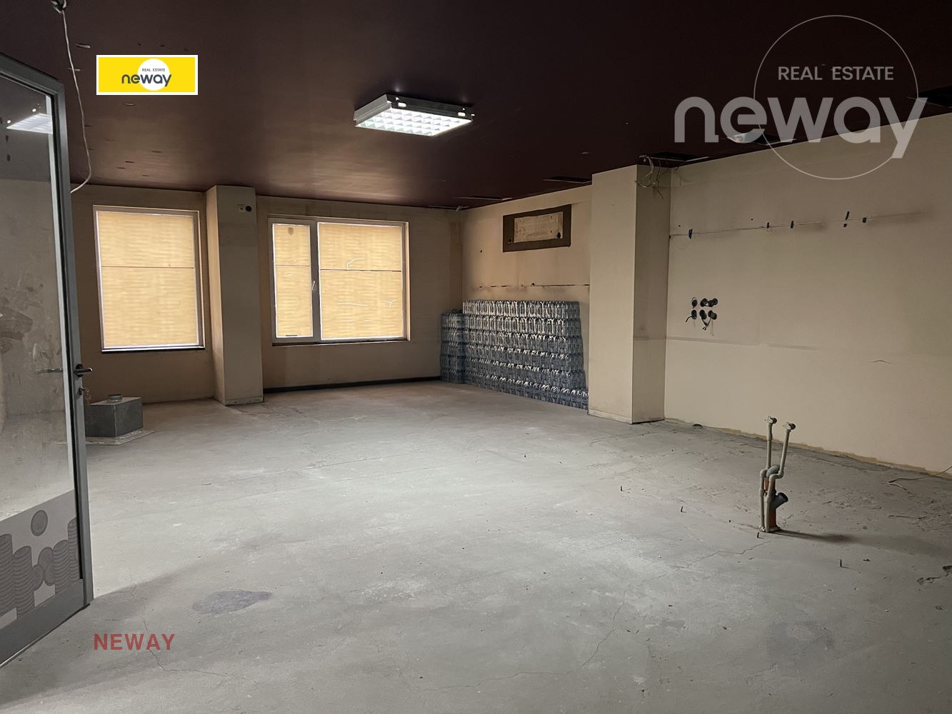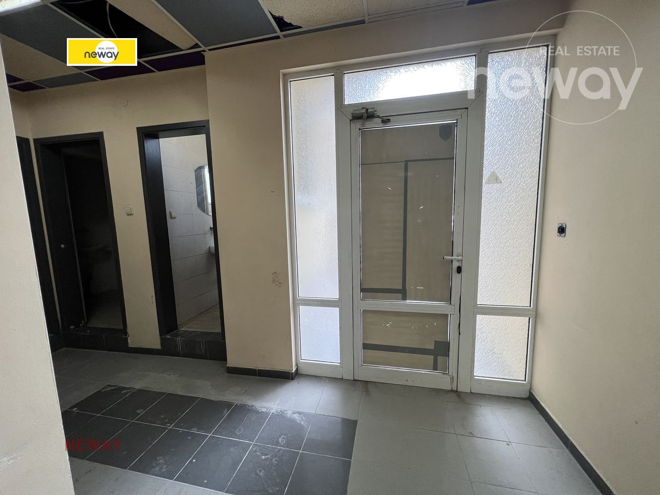Просторно помещение на комуникативно място в централната част на града, подходящо за различни дейности - магазин, офис, услуги, склад. Разполага с два санитарни възела и склад. Вътрешни преградни стени от гипсокартон, възможност за преустройство според дейността на наемателя. Голяма външна рекламна площ, удобно за паркиране.