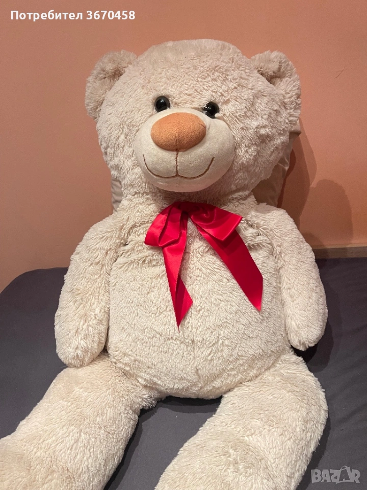 Мече с червена панделка: бежово-бяло, здрав, няма следи от скъсано, употреба и т.н. Почистен, обезпрашен и готов да зарадва някой нов собственик.