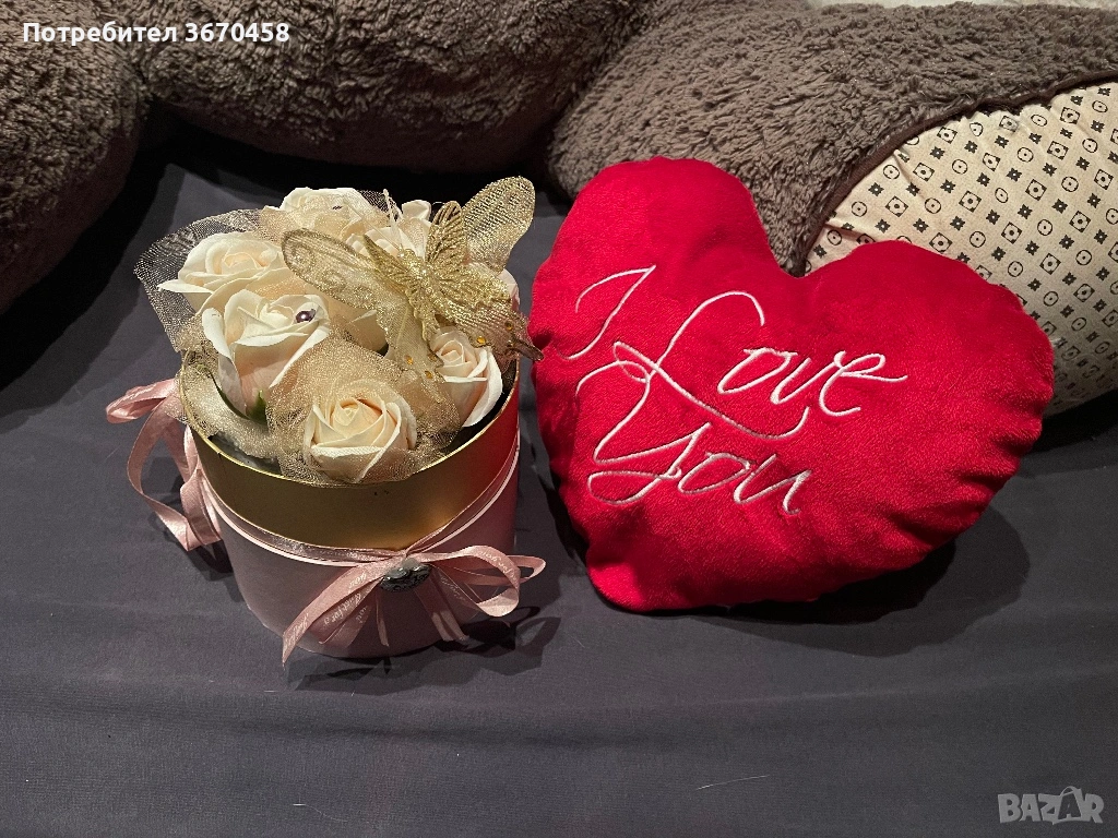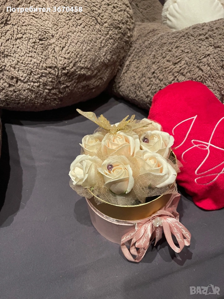 Кутия с изкуствени рози и пеперуди: 10€