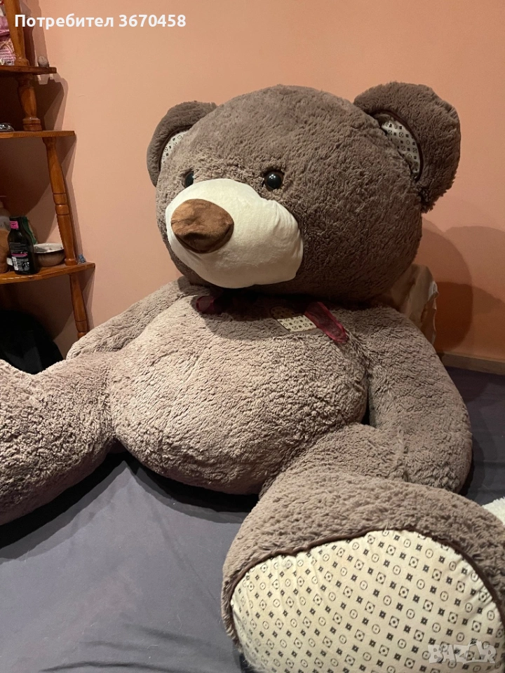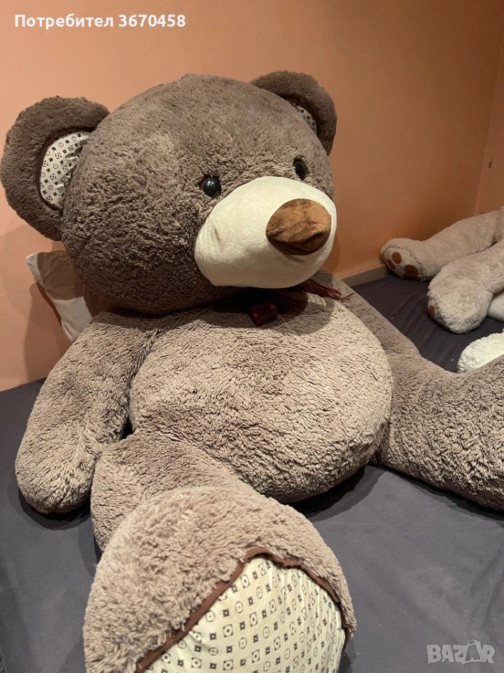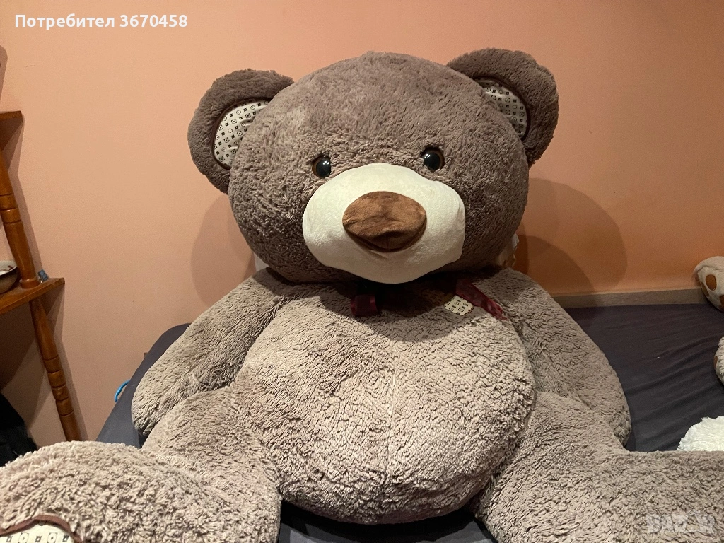 Най-голям мечок: кафяв, здрав, няма следи от скъсано, употреба и т.н. Почистен, обезпрашен и готов да зарадва някой нов собственик. Размер: над 150 см, мечето е голямо, тежко и доста обемно.