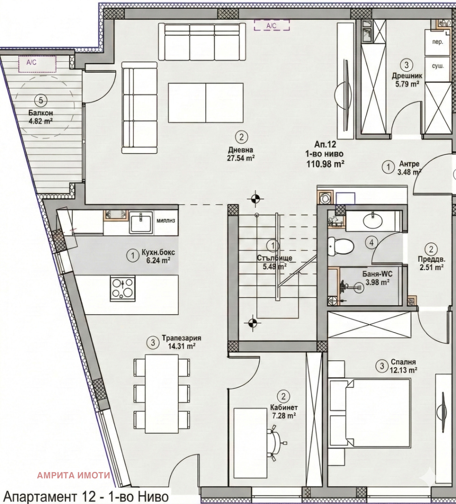 Имотът се отличава с впечатляващо пространство и функционалност: