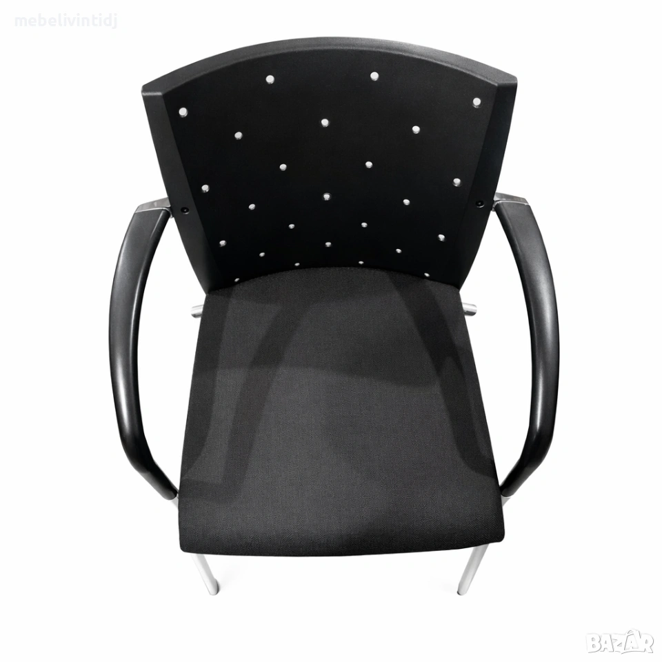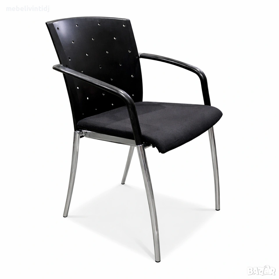 Посетителски стол Antares Taurus PC с хромирана рамка и черна перфорирана облегалка