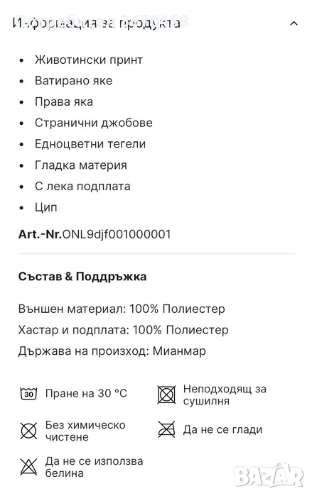 Якето е на ONLY. Подходящо както за зимния, така и за есенния и пролетния сезон.