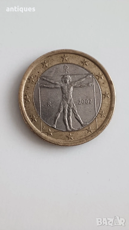 Сечена 2002 година. Това са първите евромонети с номинал 1 ЕВРО на Италия.