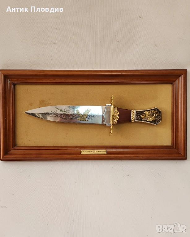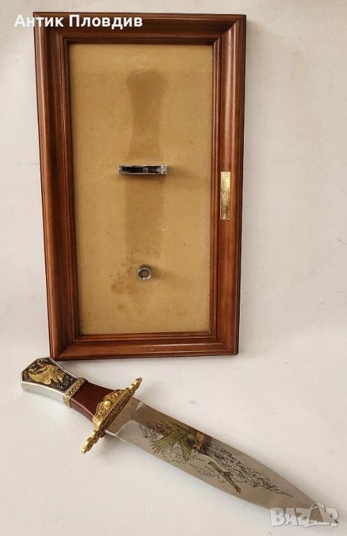 Ножът е монтиран в дървена рамка и е предназначен за стенна декорация. Представлява интересен колекционерски предмет и впечатляващ акцент в интериора.