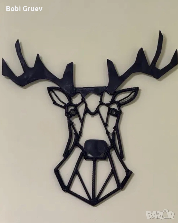 Ръчно изработен метален елен за стенна декорация.