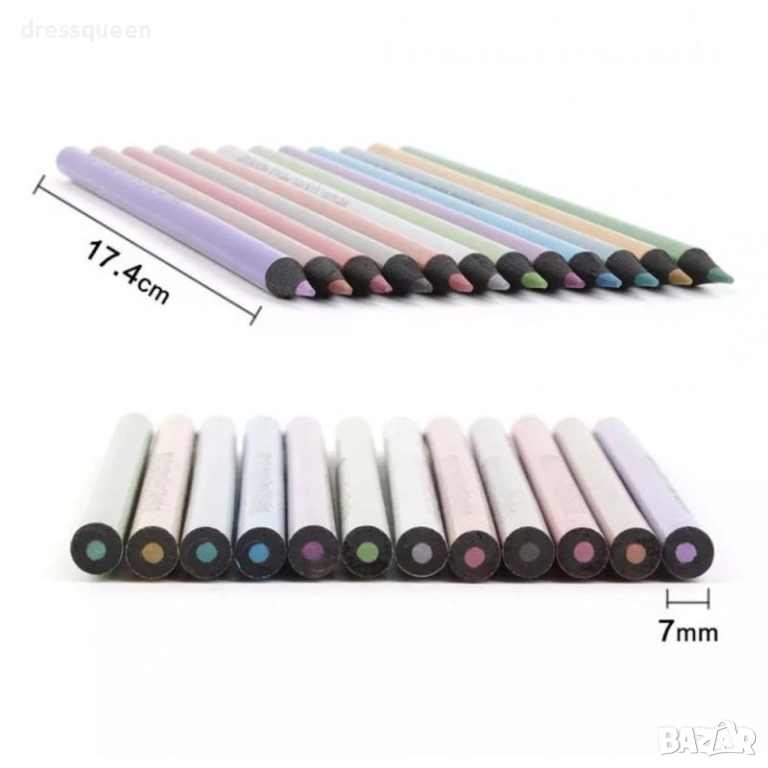 Този луксозен комплект от 12 метални цветни моливи е идеален за всеки, който търси неповторим метален ефект в своите арт проекти. Независимо дали се занимавате с декорация оцветяване или калиграфия, тези моливи ще добавят блясък и дълбочина на всяка повърхност. 12-те молива са изработени с корпус от черно дърво и имат мек графит с диаметър 3.0 мм, което ги прави лесни за работа и осигурява прецизен контрол. Комплектът е отлично допълнение към всеки арт комплект и е особено препоръчителен за работа върху тъмни основи, където металният ефект изпъква най-силно.