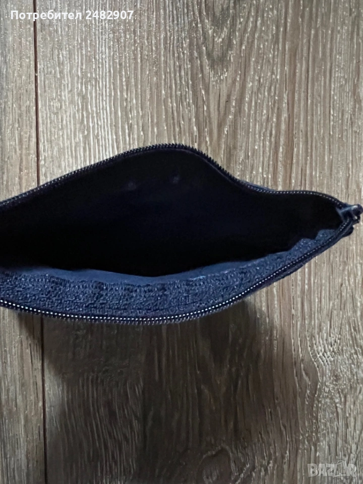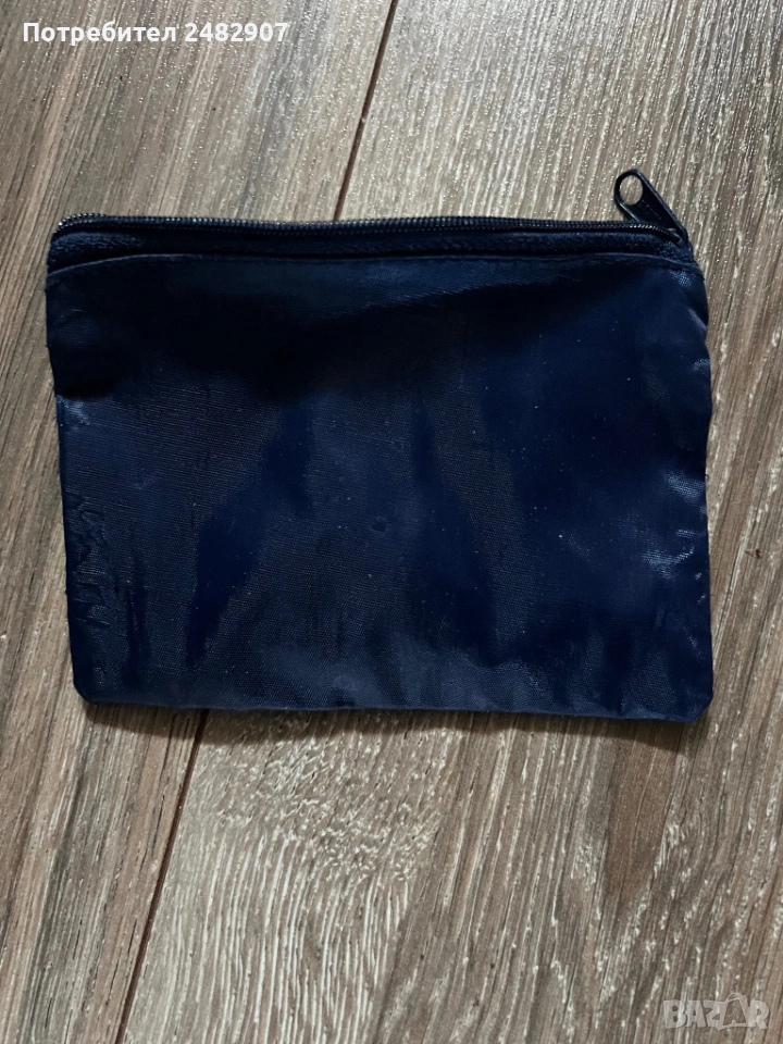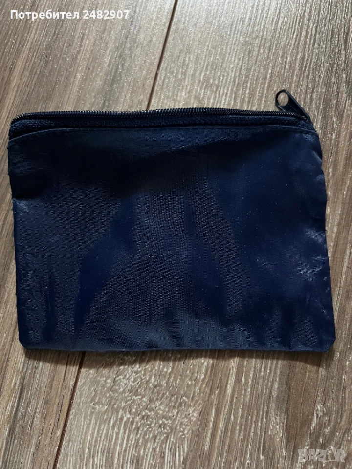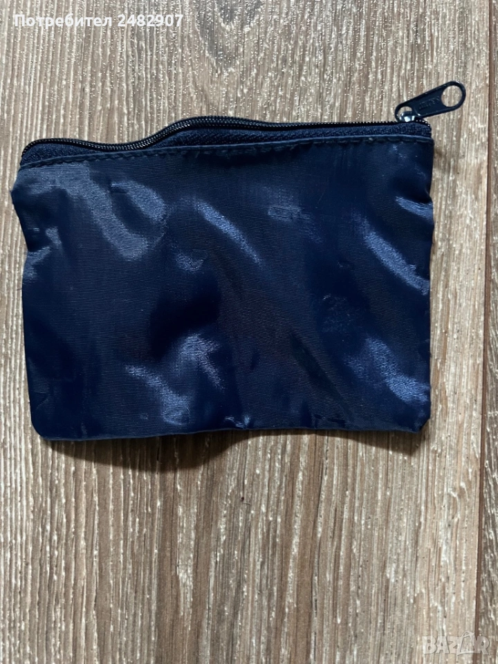 Тъмно синьо портмоне за монети с цип - една преграда от промазан плат. Размери - 10/14 см. Чисто ново, не е използвано.