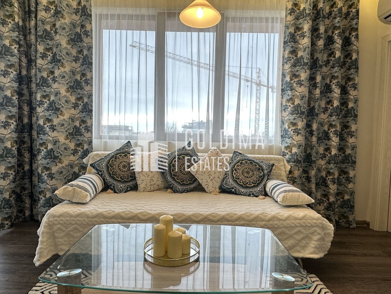Състои се от антре, всекидневна с кухненски кът, две спални, баня с тоалетна и тераса. Предлага се напълно обзаведен и готов за ползване, с всички необходими мебели и електроуреди. В отлично състояние!