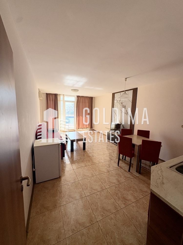 Намира се на втори етаж от седеметажна сграда в затворен комплекс, разполагащ с: 24 - часова рецепция, два басейна с детски зони, две водни пързалки, фитнес, ресторант, бар, мултифункционална зала с възможност до 200 седящи места, детски център, паркинг, открита сцена за концерти и събития, зали за - конференции, танци, бойни изкуства, настолни игри; магазини, вендинг зона, бизнес услуги, рент - а - кар, трансфери, поддържани зелени площи, алеи за разходка, охрана и видеонаблюдение. На първа линия и само на крачка от морето и плажа!