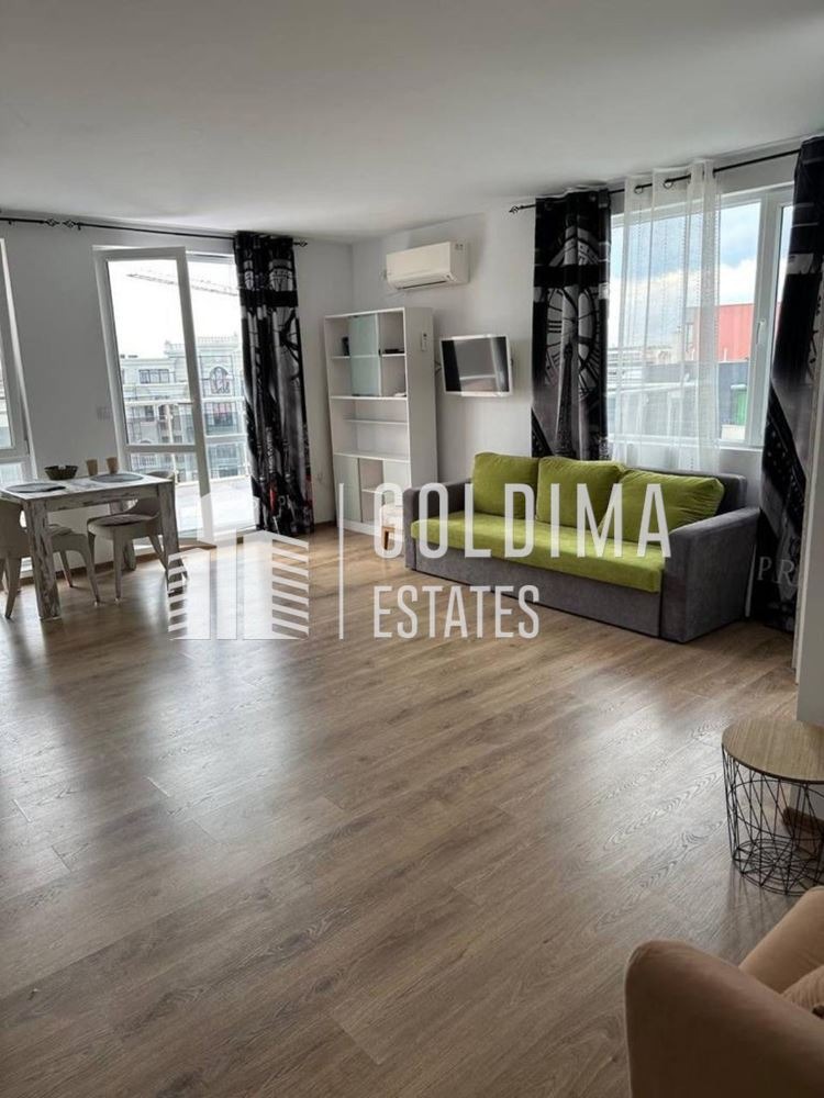 Състои се от просторна и светла всекидневна с кухненски бокс и кът за спане, коридор, баня с тоалетна и две тераси. Напълно обзаведен и оборудван с висококачествена техника, готов за нанасяне, в отлично състояние!