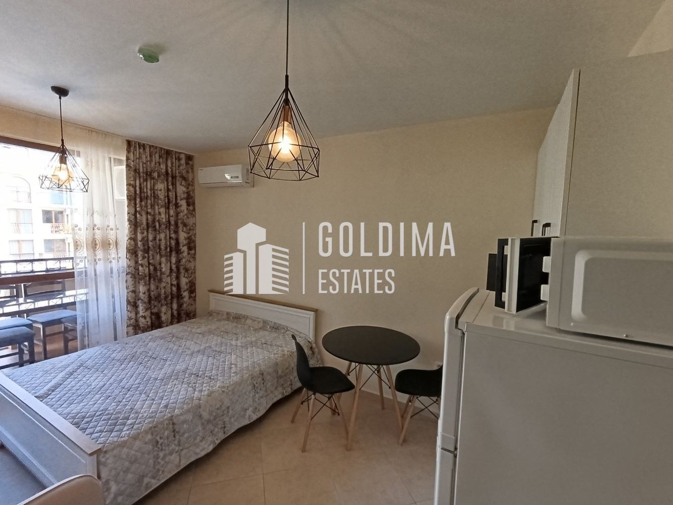 ГОЛДИМА Естейтс продава едностаен апартамент с обща площ от 36 кв. м. в к. к. Слънчев бряг.