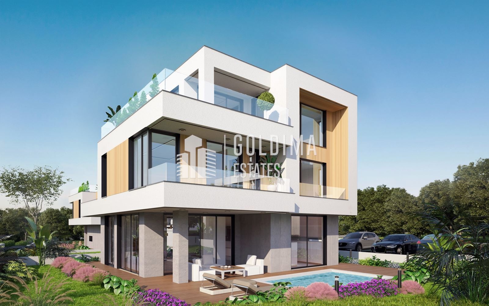 ГОЛДИМА Естейтс продава триетажна къща със собствен двор, басейн и паркомясто за две коли.