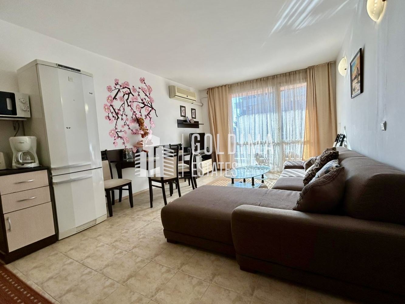 Намира се на втори етаж от пететажна сграда в комплекс, разполагащ с: плувен басейн, добре поддържани зелени площи и охрана. Само на 200 метра от плажа!