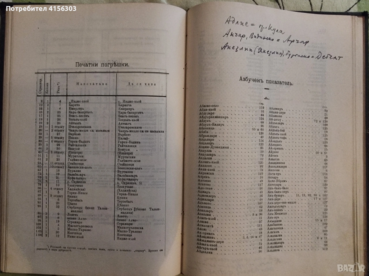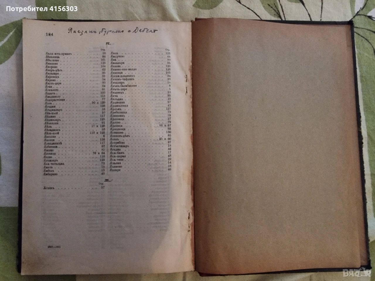 Списък на населените места в България. София. 1911.