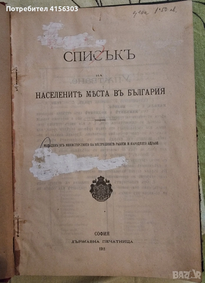Списък на населените места в България. София. 1911. → Обява 53723579