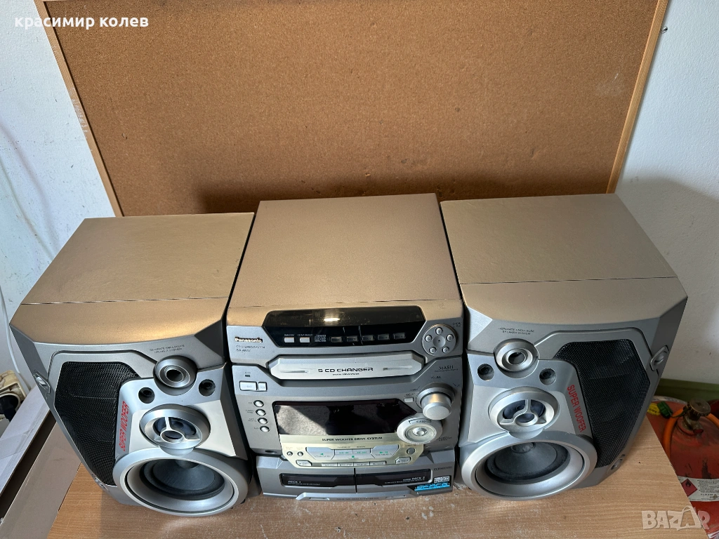 Системата е в добро състояние.Като работи радио , дискове и AUX.Дистанционно няма.Отличен и мощен звук.