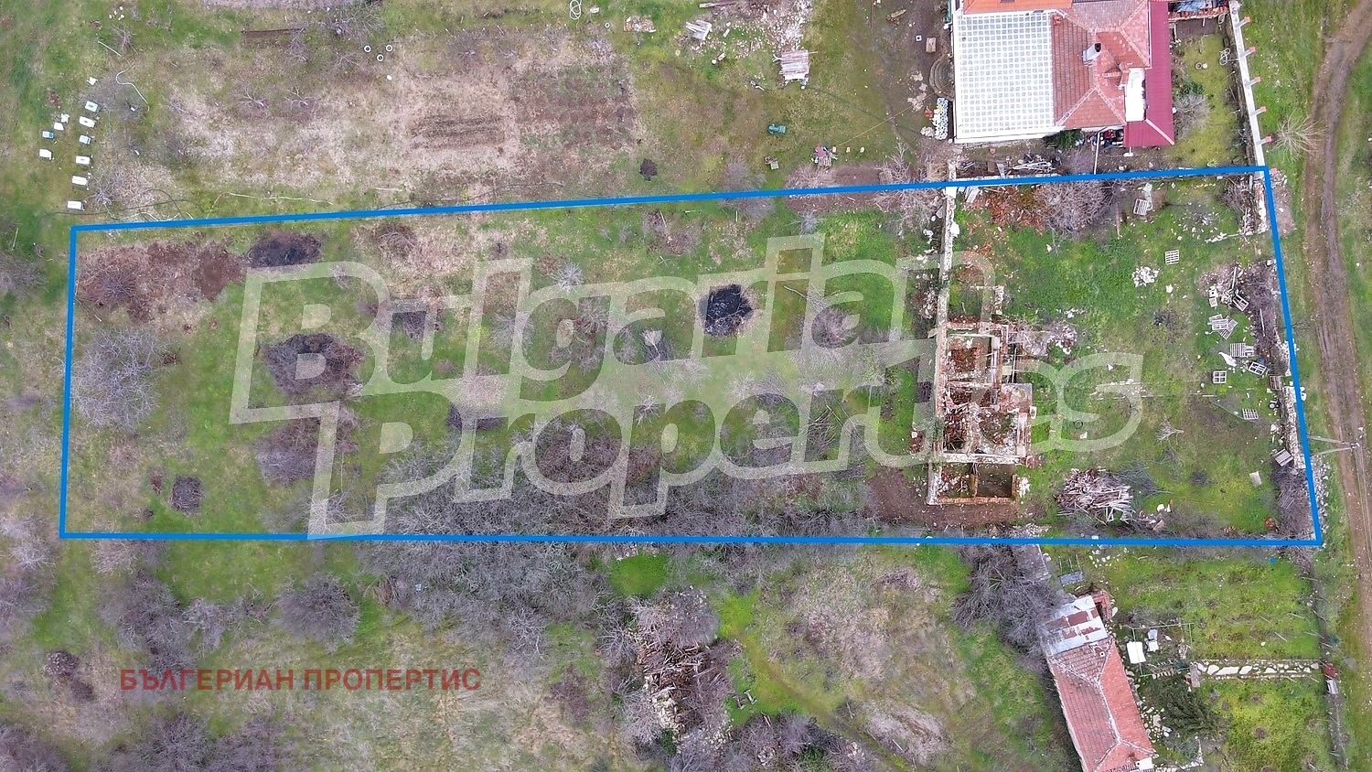 Имотът представлява дворно място с площ от 2580 кв. м., в което се намират останки от стара къща. Основната сграда както и допълващото застрояване все още са отразени в регулационния план на селото, което дава възможност за тяхното възстановяване по съществуващите граници. Сериозно предимство при планиране на бъдещо строителство са наличните партиди за електрическо захранване и питейна вода, което значително улеснява процеса по започване на изграждането.