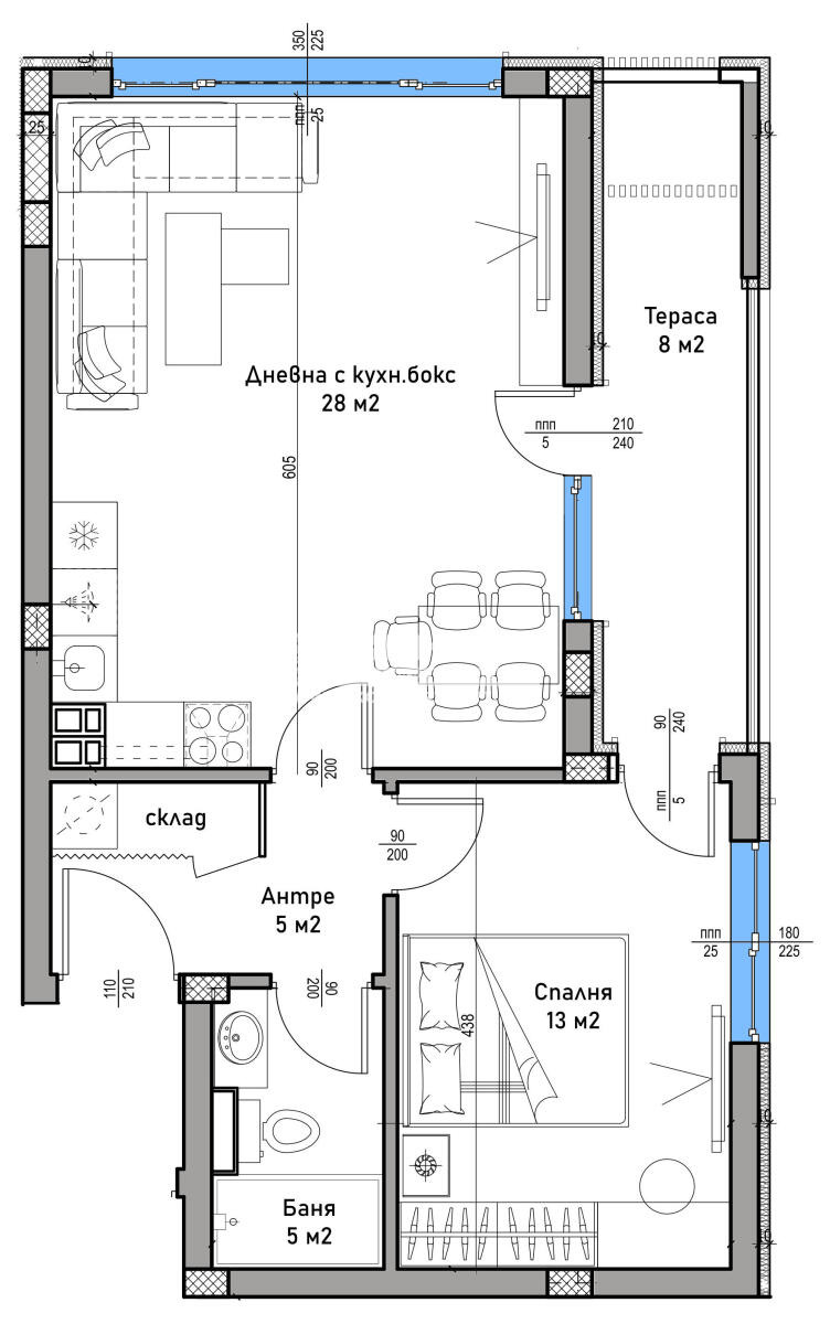 - Просторни дневни с френски прозорци