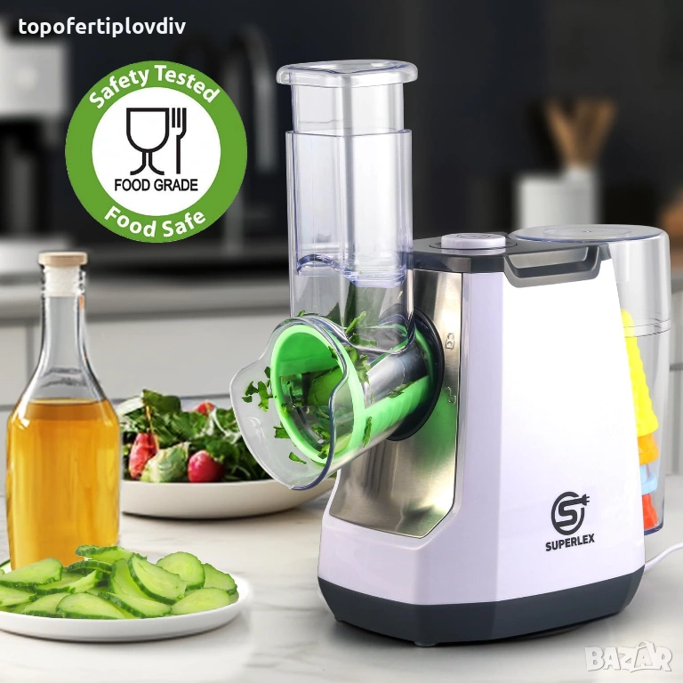 Универсален за ежедневна употреба – От настъргване на сирене до нарязване на зеленчуци, това електрическо ренде за сирене и зеленчуци е идеалено за приготвяне на ястия, закуски или парти ястия.