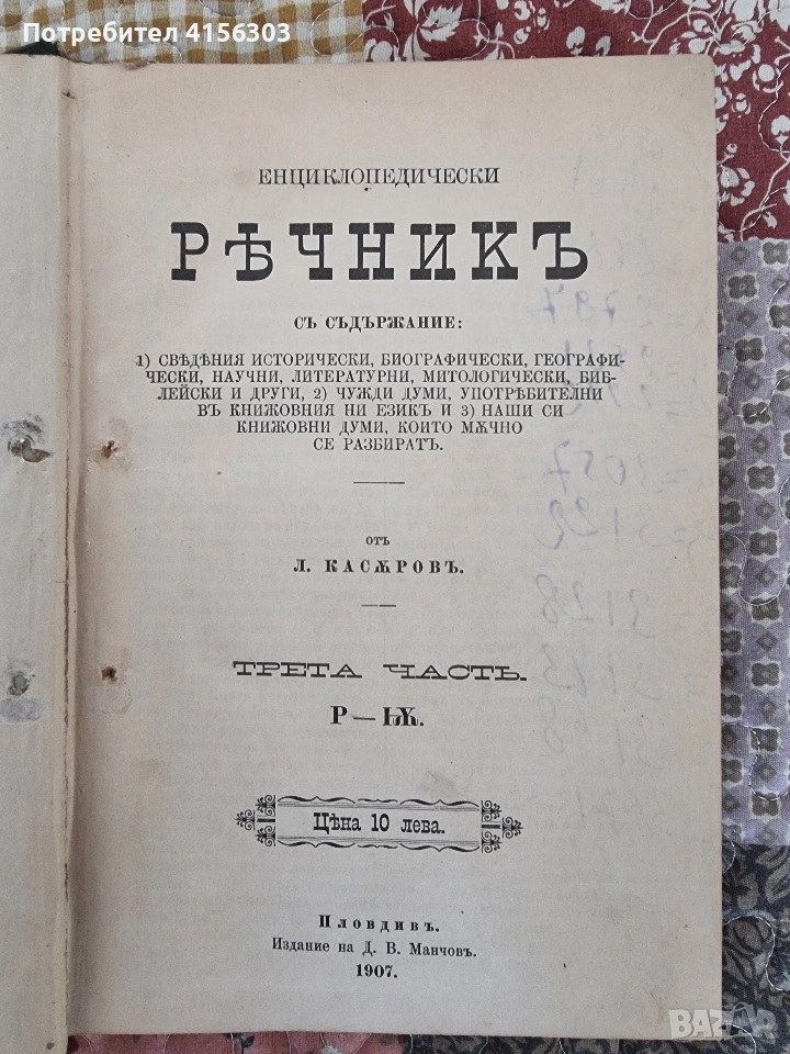 Енциклопедически речник. Л.Касъров. 3 части. 1899/1907. → Обява 53723988