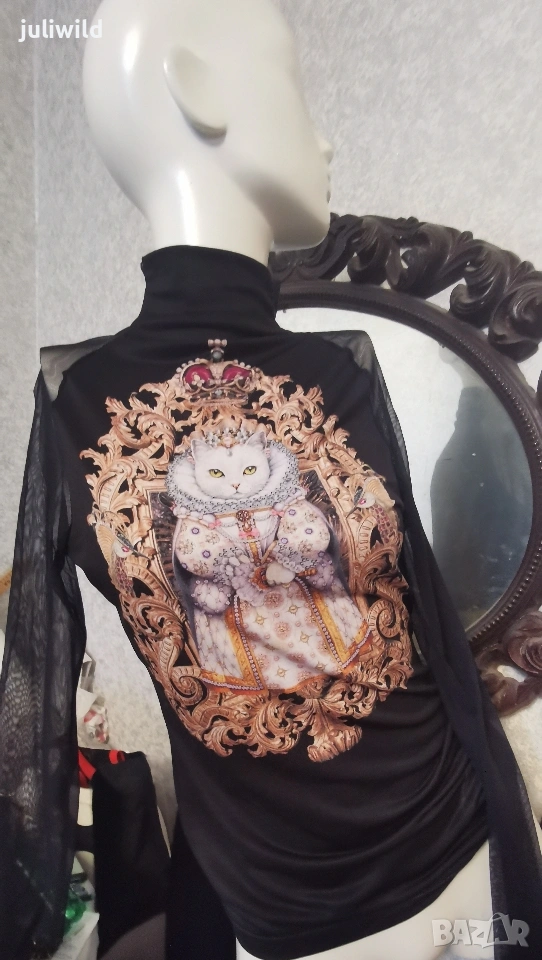 Уникална щампа,мека еластична материя, ръкав еластичен тюл.