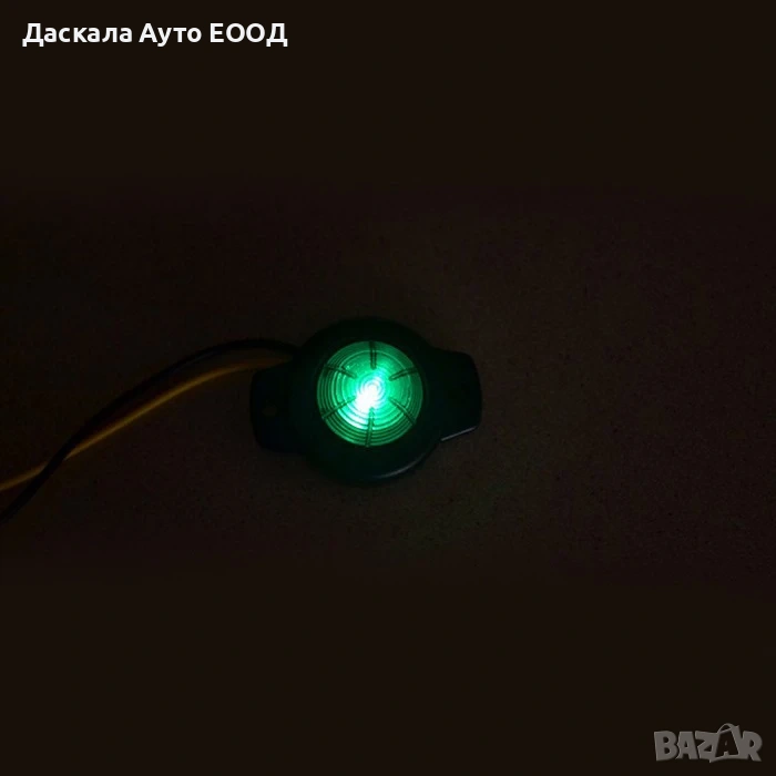 ЗЕЛЕН малък кръгъл ЛЕД габарит с черна подложка, 12-24V – детайли: