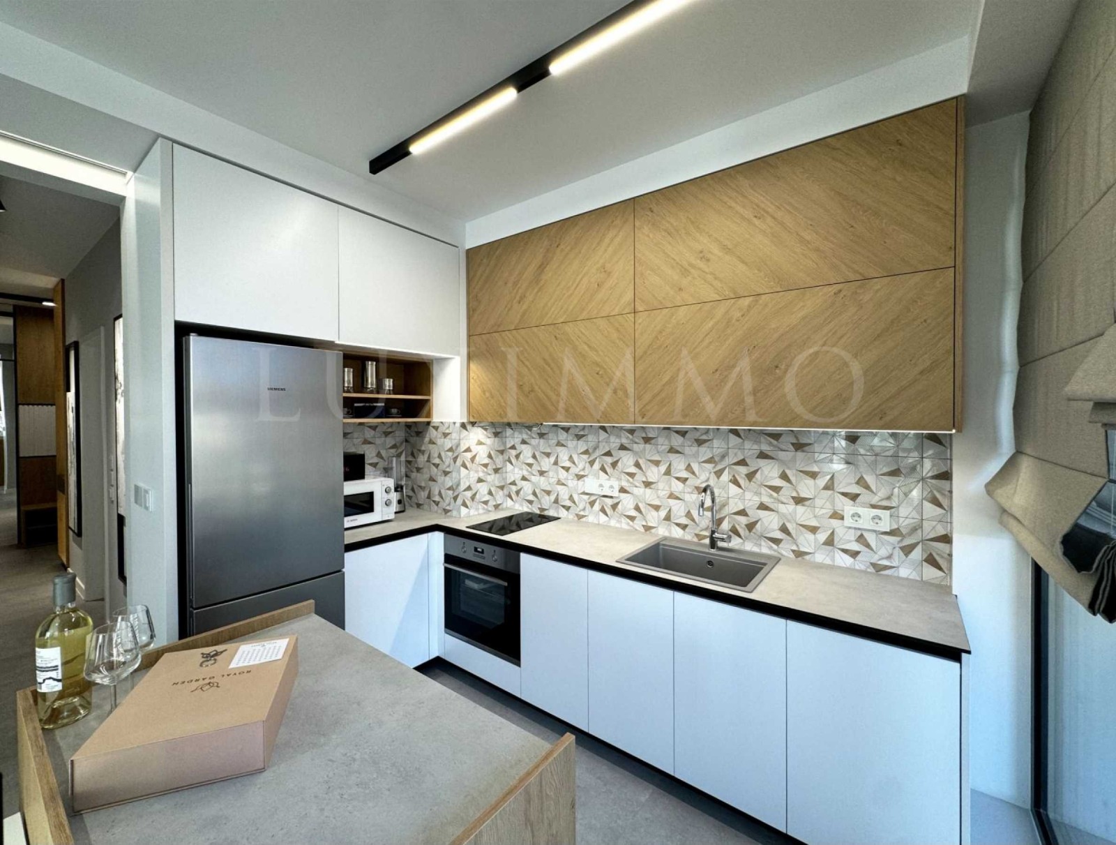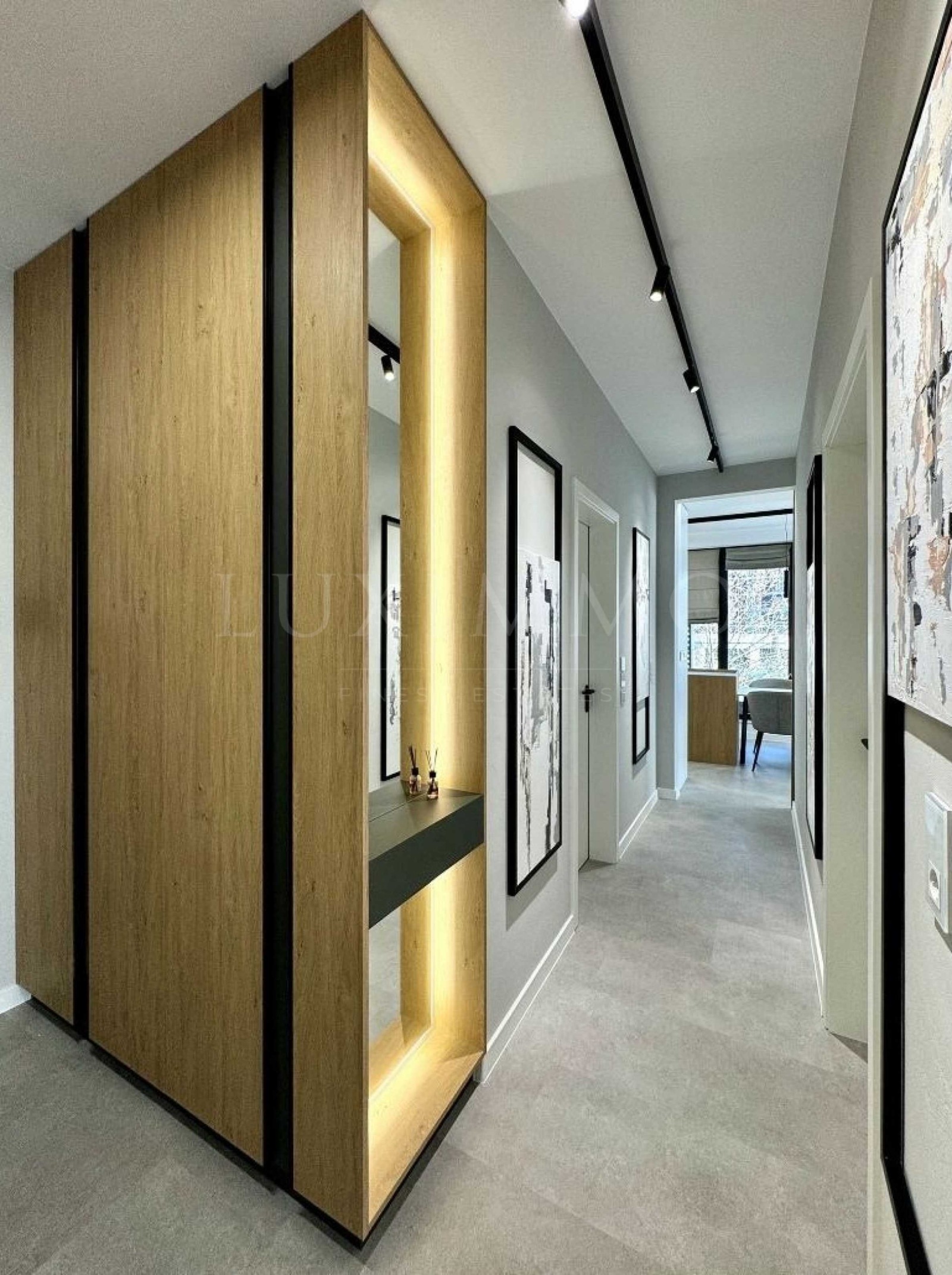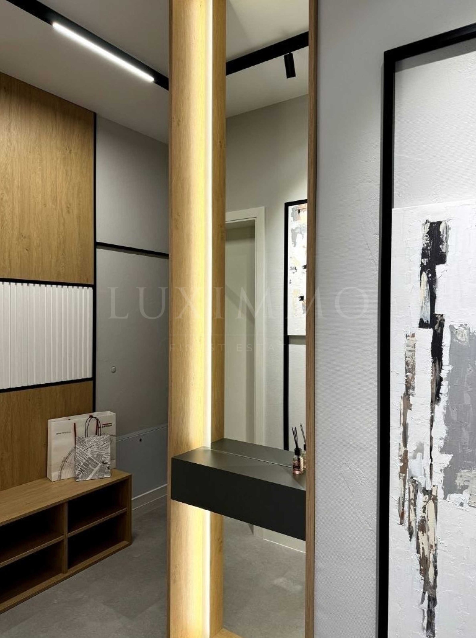Апартаментът е напълно обзаведен и оборудван с висококачествени мебели, уреди и елементи, които осигуряват комфорт и стил. Интериорът е реализиран изцяло по дизайнерски проект, който обединява елегантност и функционалност. Във всяка стая ще откриете внимание към детайла и премиум изпълнение. Този прекрасен имот предлага съвременен комфорт, изключителен дизайн и удобство.