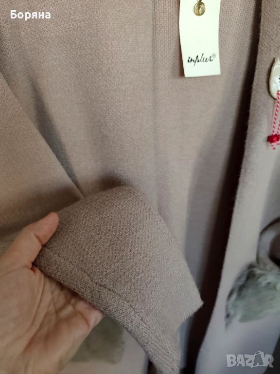 Красива бутикова италианска жилетка с джобове от естествен косъм, нова с етикет, в цвят капучино. Материя вискоза, полиамид и еластан, размер универсален М/L.