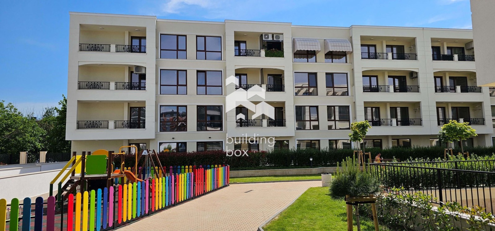 Комплексът впечатлява с красиво озеленен и отлично поддържан двор, който създава спокойна и приятна среда за живеене.