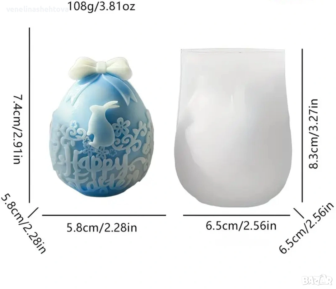 3D Великденско яйце "Happy Easter" силиконов молд форма за свещи гипс сапун смола → Обява 53725120
