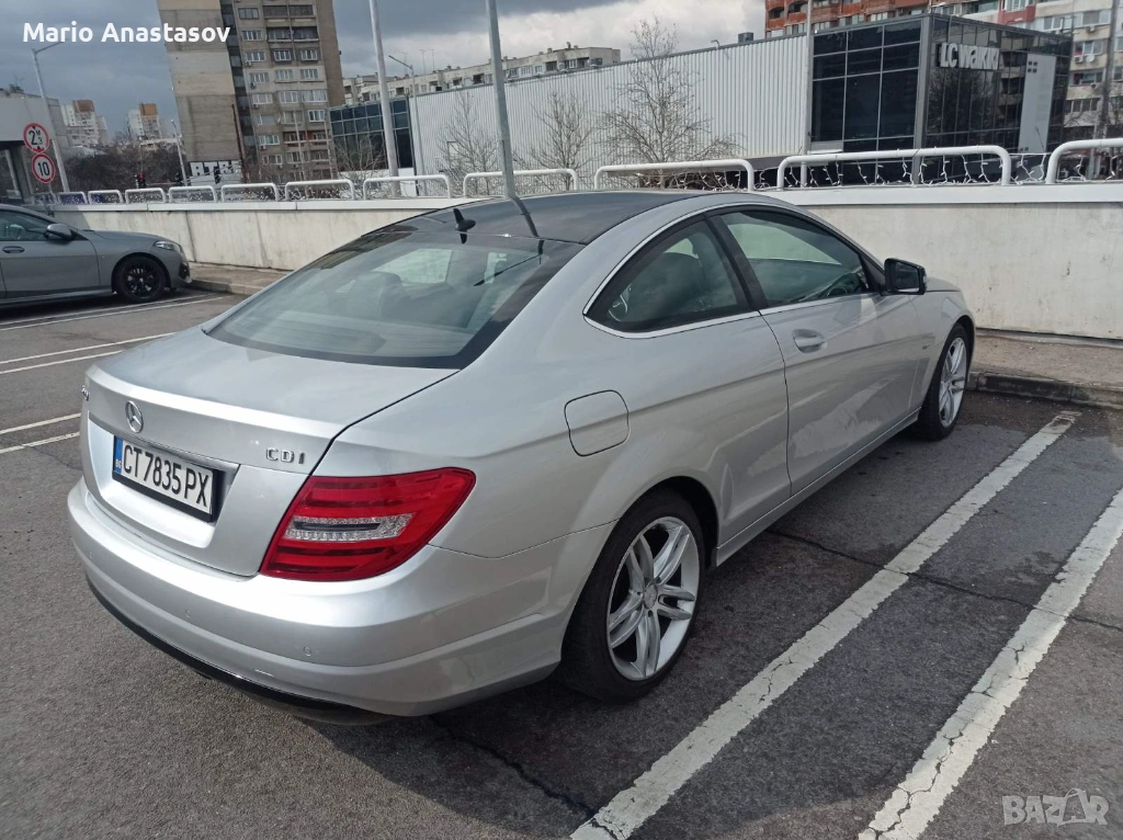 Продавам Mercedes C-Class Coupe (W204 facelift) C220 CDI, 2013 г., автоматик – елегантно купе със стегната визия, black look отпред и черен покрив/визия (видимо от снимките). Автомобилът предлага много добър комфорт при ежедневно шофиране и дълъг път – удобен интериор, добра шумоизолация и стабилно поведение, характерно за моделната линия W204.