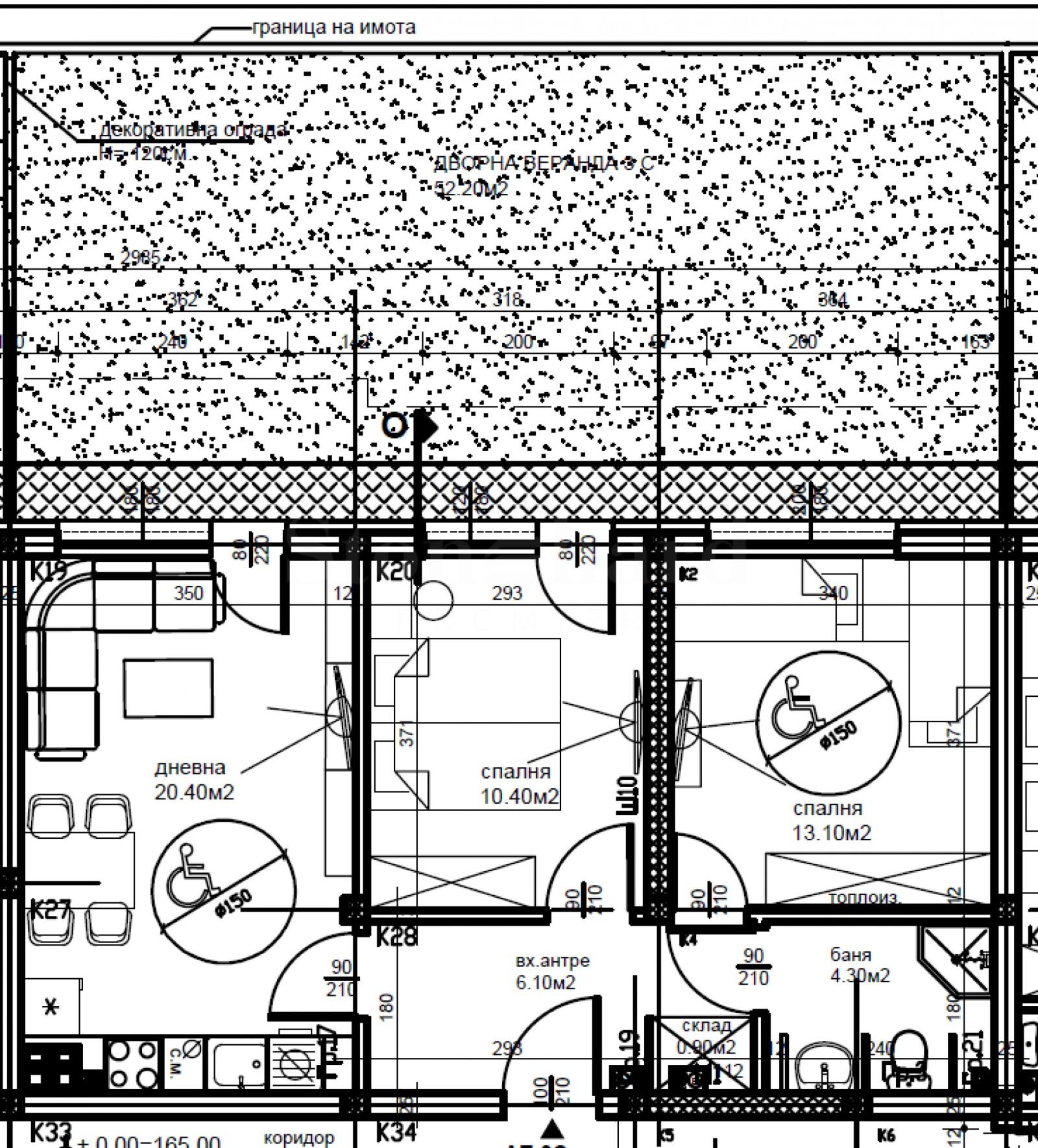 конструкция - монолитна стоманобетонна конструкция с външни 25 см тухлени стени с ефективна топлоизолация;