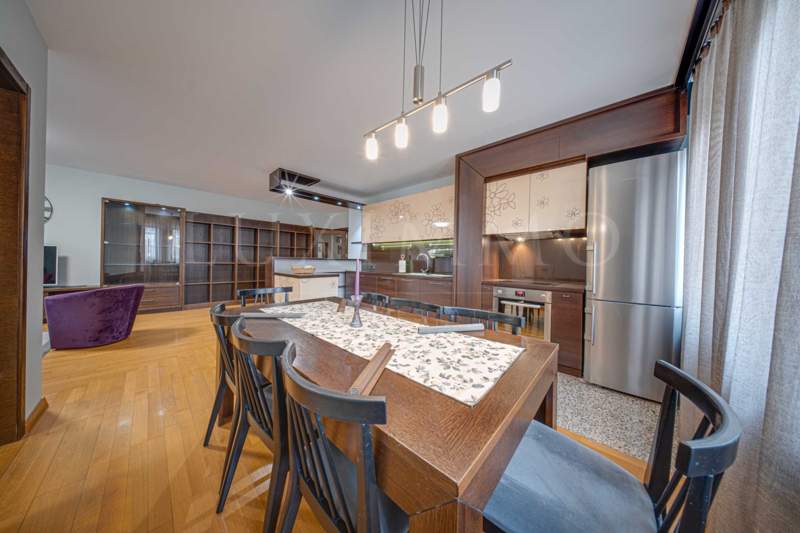 Представяме просторен и светъл тристаен апартамент под наем с включено подземно паркомясто, разположен в един от най-предпочитаните и престижни квартали на София 'Изгрев'. Районът е изключително търсен за живеене заради спокойната среда, зеленината и отличната инфраструктура, като в непосредствена близост се намират Ловен парк и Борисовата градина. Метростанция Жолио Кюри е на около 8 минути пешеходно разстояние от имота.