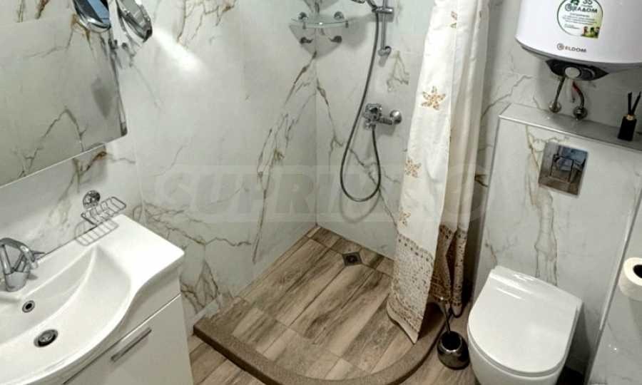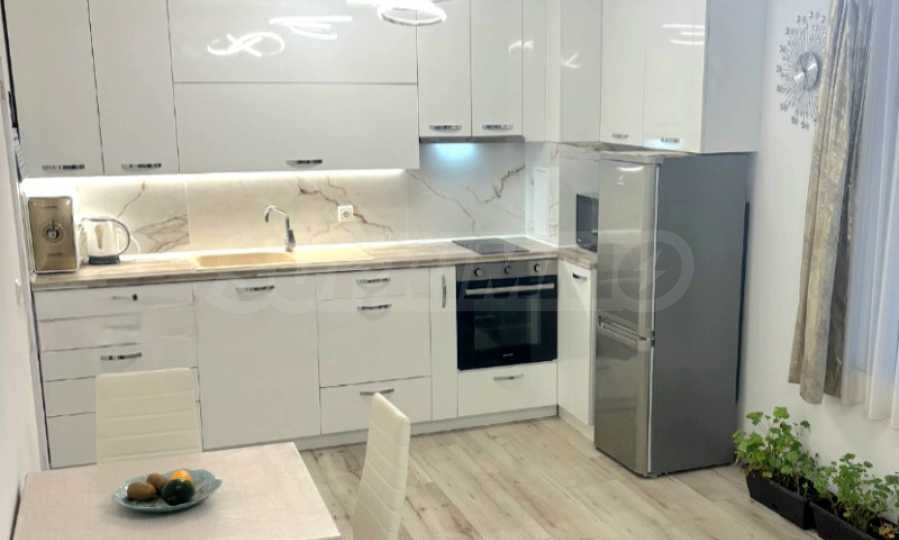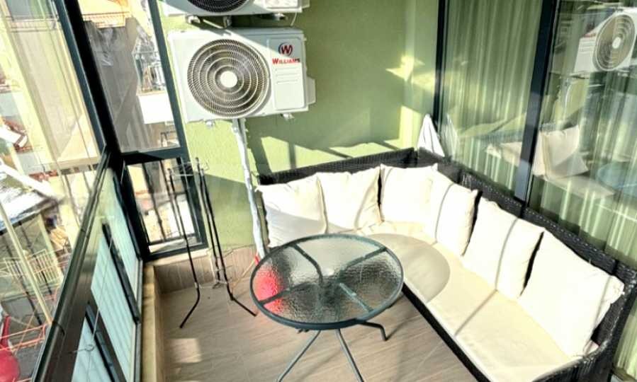 Апартаментът е напълно обзаведен и оборудван с нови мебели и висококачествени електроуреди - климатици, пералня с функция сушилня, просторни гардероби и др. Тераса е остъклена и превърната в уютен кът за хранене и отдих с гледка към морето.