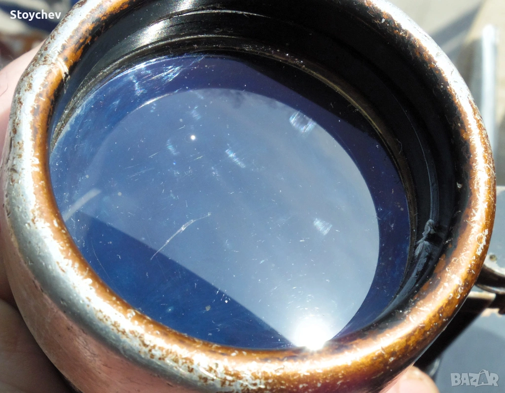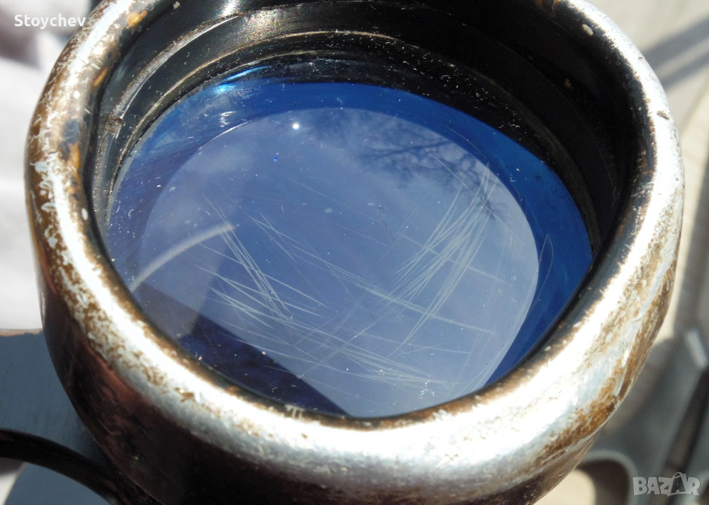 А нашият участник е със запазена мерителна скАла в десният барел на окуляра, много рядко срещано при тези ветерани. Тя е високопрецизна, артилерийски тип както подобава на службата му. Измерванията трябва да са качествени, както и гледката. Ето че стигнахме и до нея - тя е отлична, ала Ернст Лайц. Перфектни цветове, перфектно поле (7.3 градуса = линия 128 м на км), рязко очертано и работещо на над 85%, висока резолюция. Това е.