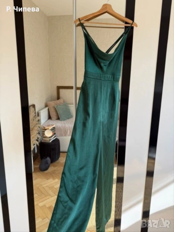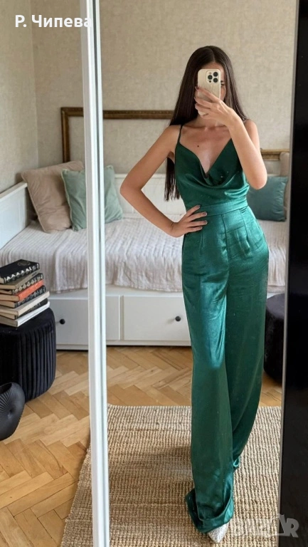 Страхотен гащеризон от тежък и плътен сатен в наситен, красив горскозелен цвят ✨