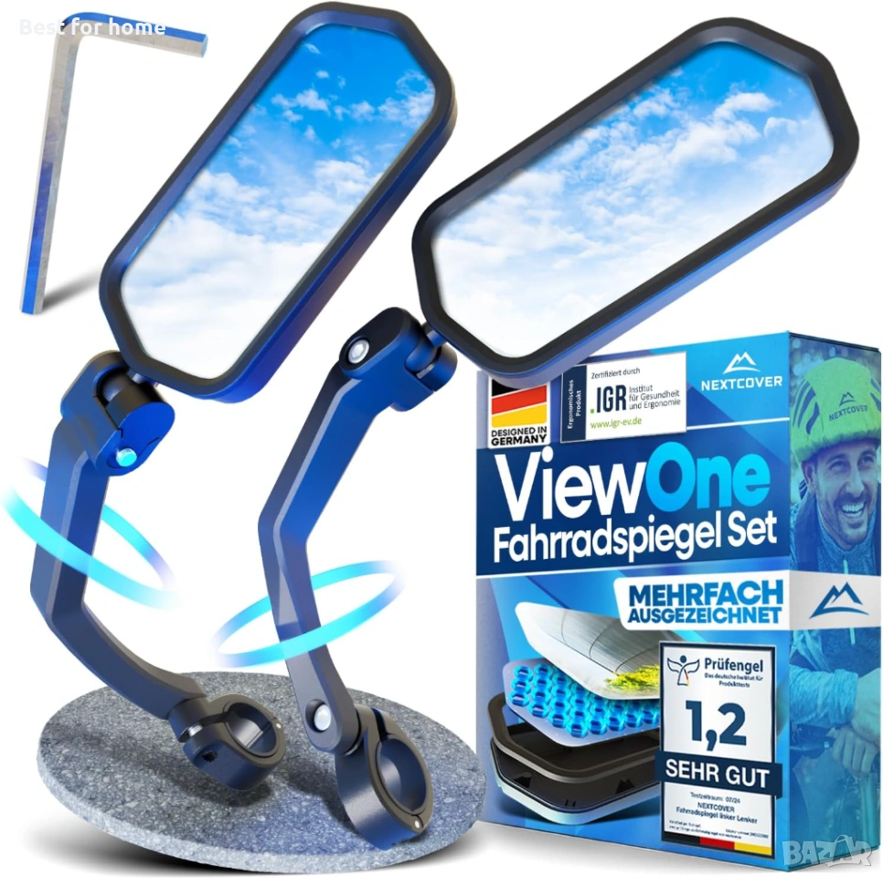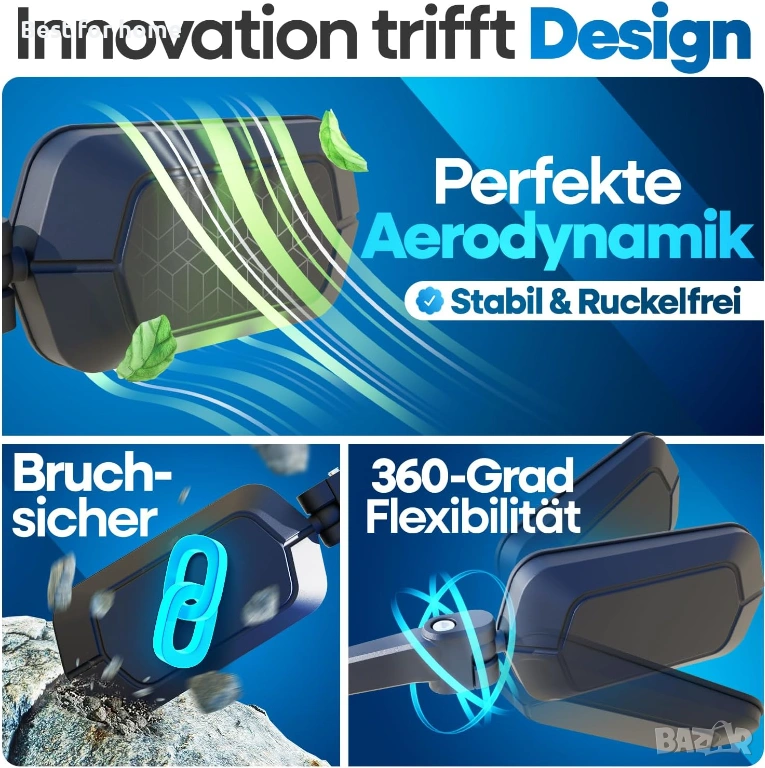 Всичко на един поглед: идеалната 360° гъвкавост и аеродинамично оптимизираната форма на нашето специално разработено огледало за велосипед осигуряват най-добра видимост без постоянно завъртане и оптимална производителност.